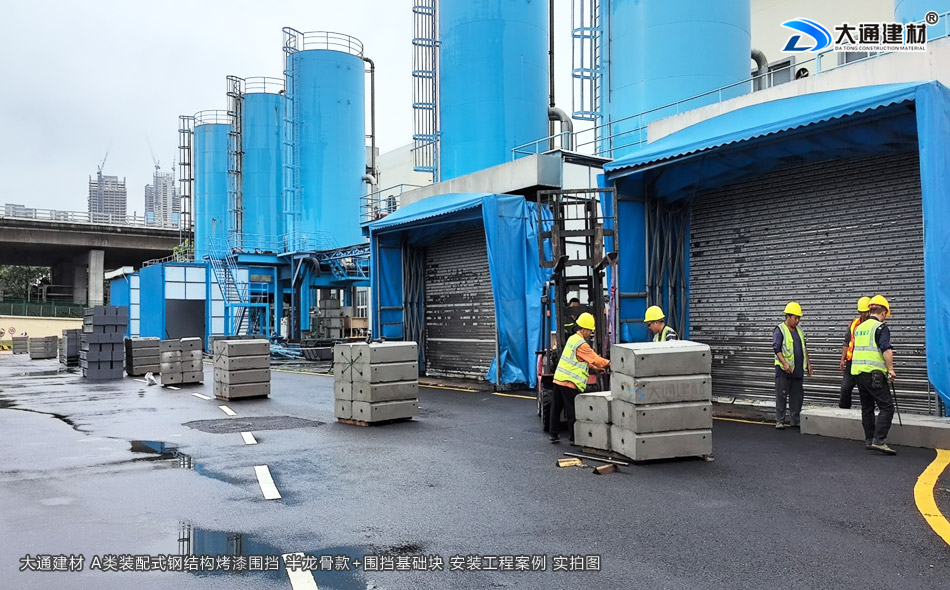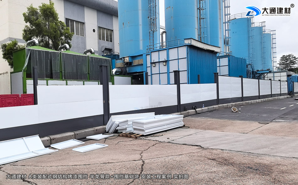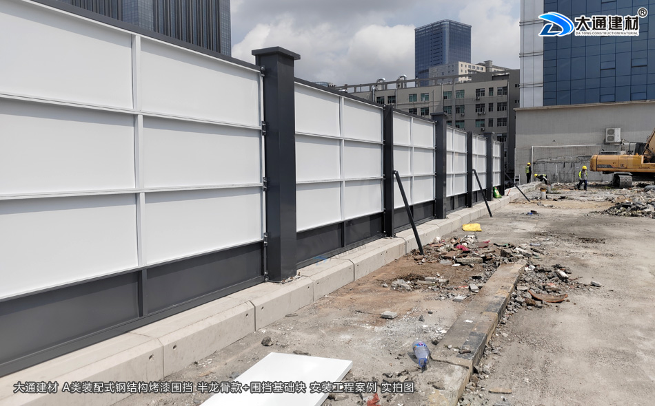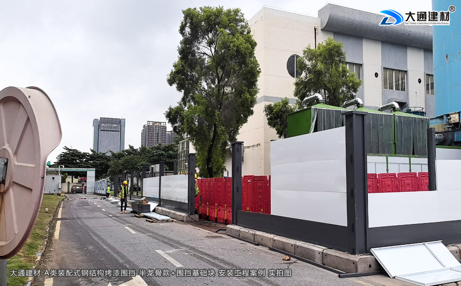 2.5米高裝配式烤漆鋼圍擋A款-施工用圍擋+圍擋基礎塊安裝施工-A/B/C類圍擋-深圳市大通建材有限公司鋼圍擋生產定制廠家