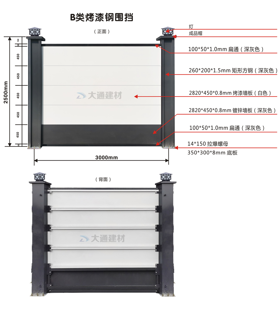 深圳市大通建材廠家生產的B類鋼結構圍擋烤漆款產品參數