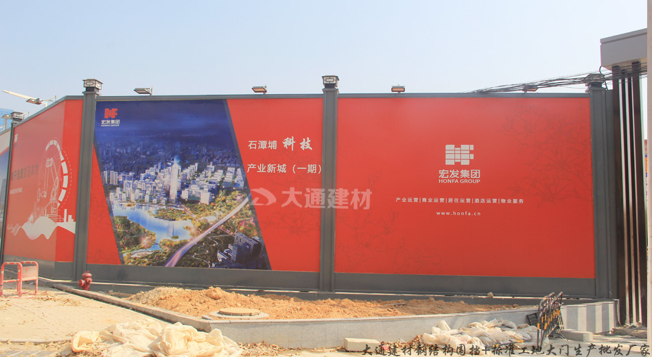 深圳市大通建材有限公司,大格局、通天下! 新型裝配式鋼結構圍擋A款/B款/C款,PVC圍擋,圍擋基礎,工地大門等產品生產廠家電話13826562448