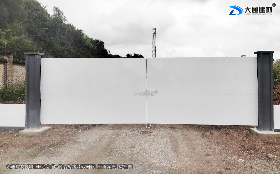 建筑工地大門-施工大門-鋼結構烤漆雙開門-工地大門-深圳市大通建材有限公司鋼圍擋生產定制廠家