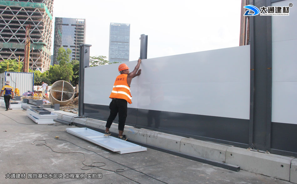 上述展示 深圳市大通建材的圍擋基礎墩與圍擋的安裝過程