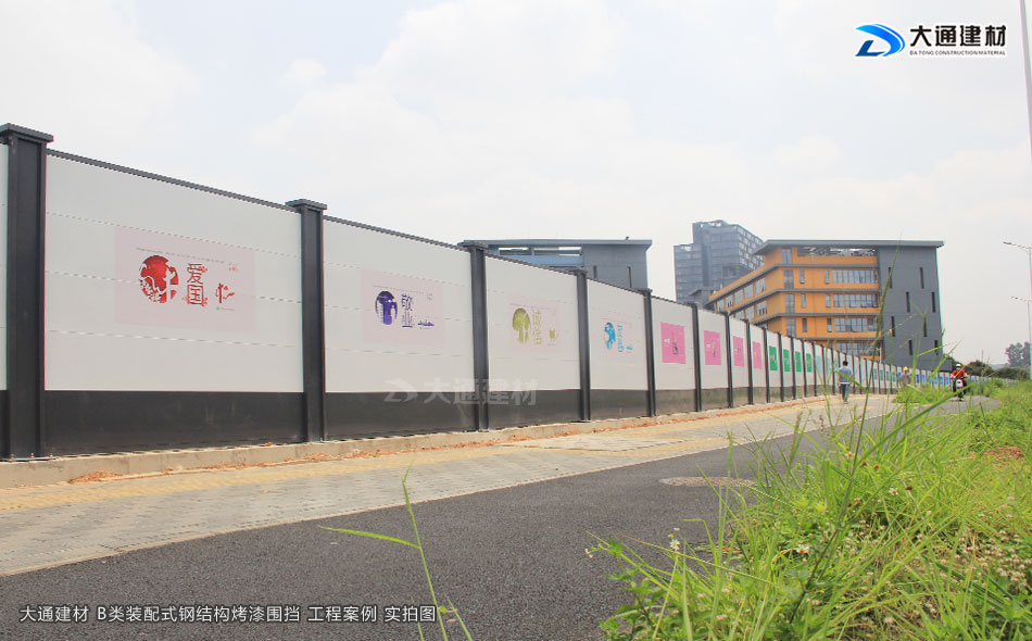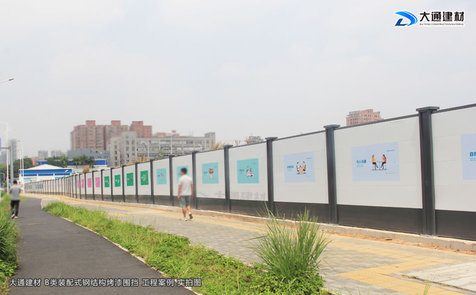深圳市大通建材有限公司生產的符合深圳標準的裝配式B型圍擋,是一款新型鋼結構圍擋,具體有美觀、環保、抗風力強等特點,已廣泛應用到深圳特區建設的各類施工工程項目中,以下展示的圍擋圖片是大通裝配式B型圍擋應用到深圳龍華觀瀾人民路的工程案例。