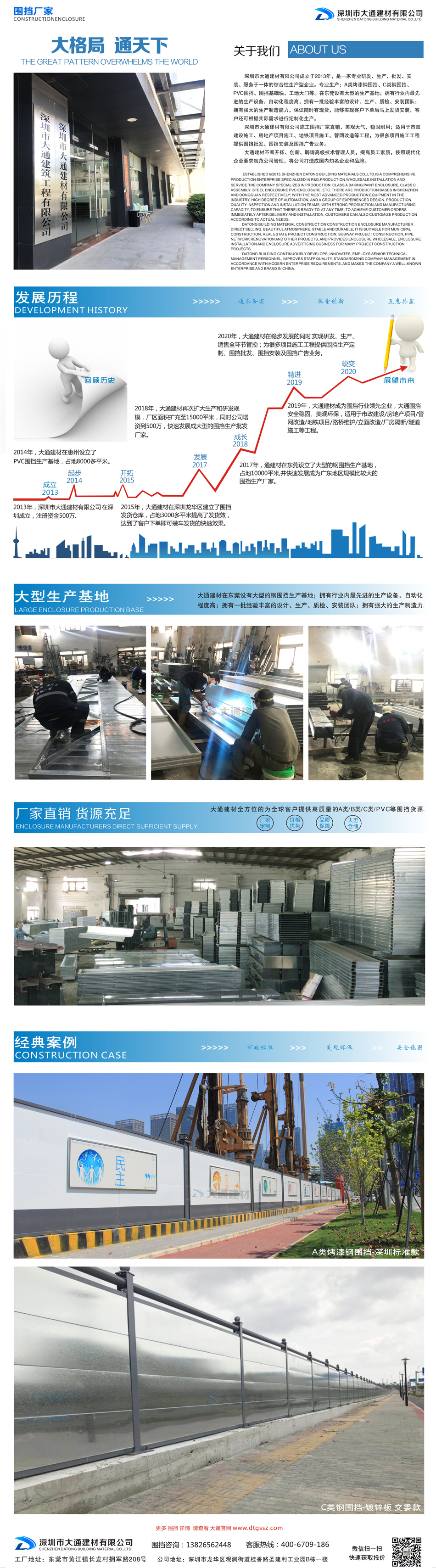 深圳市大通建材有限公司,大格局、通天下! 新型裝配式鋼結構圍擋A款/B款/C款,PVC圍擋,圍擋基礎,工地大門等產品生產廠家電話13826562448