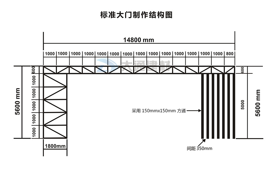 深圳市大通建材有限公司是一家專業生產標準工地大門廠家,今天小編與大家一起看看大通建材生產的標準工地大門的常規款式有哪些吧。大通建材常規款式的標準工地大門規格尺寸:14.8米寬x5.6米高 具體參數如下展示的尺寸規格圖
