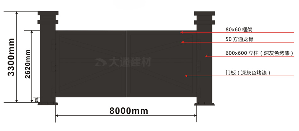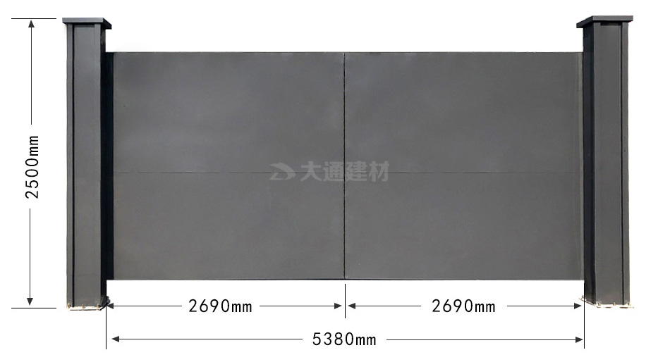 大通建材鋼結構烤漆款標準工地大門,不僅工地大門的門板與立柱的顏色可定制,工地大門的尺寸規格(長度、高度)等也可定制化生產。