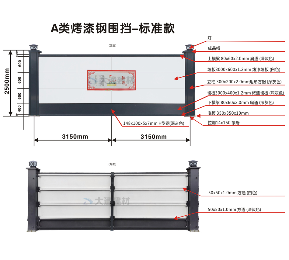 深圳市大通建材有限公司,大格局、通天下! 新型裝配式鋼結構圍擋A款/B款/C款,PVC圍擋,圍擋基礎,工地大門等產品生產廠家電話13826562448