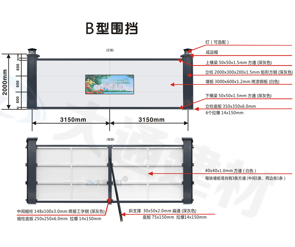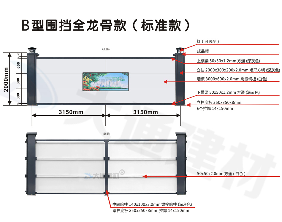B型圍擋-2米高新型鋼圍擋-B型圍擋全龍骨款(標準款)
