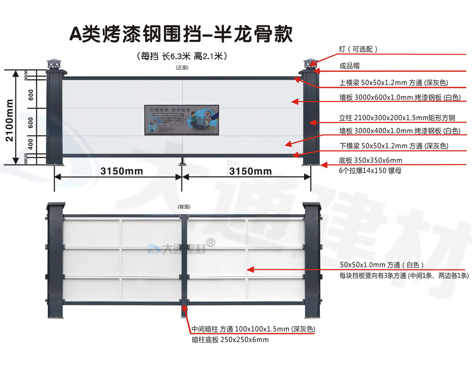 2米1高A類裝配式烤漆鋼結構圍擋半/無龍骨款