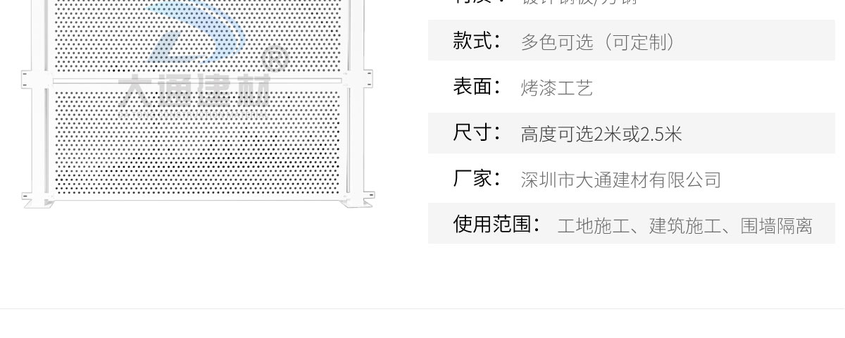 深圳市大通建材有限公司是一家集研發、生產、安裝、服務于一體的綜合性圍擋廠家,公司主營產品鋼圍擋、鋼結構圍擋、PVC圍擋、施工圍擋、市政圍擋、工地圍擋、烤漆鋼圍擋,官網:http://m.nnmdl.com/ ,銷售熱線:138 2656 2448